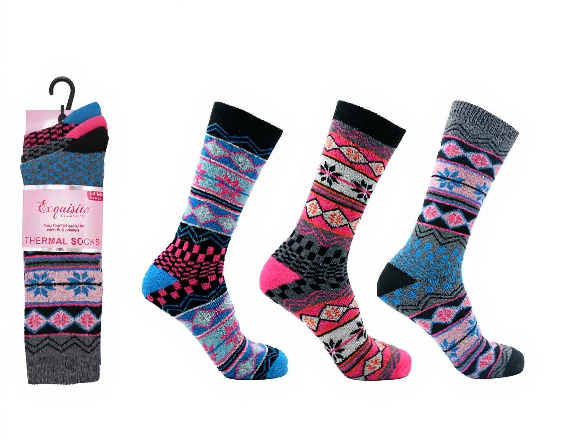 6 Pairs Ladies Thermal Fairisle Socks Assorted UK 4-8