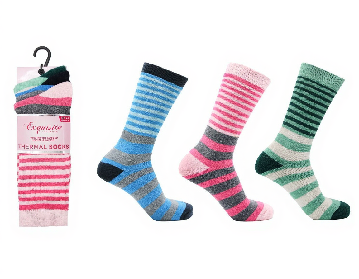 6 Pairs Ladies Thermal Stripe Socks Assorted UK 4-8