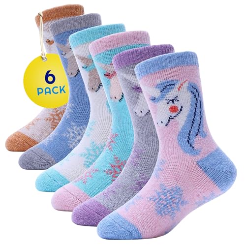 Sunny Socks Kids Thermal Socks Unicorn 6 Pack for Girls Ages 4-7 - Warm, Thick, Cosy Winter Socks, Soft, Comfortable, Fun Design for Hiking, Walking & Outdoor Activities