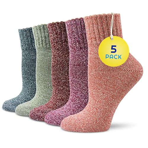 Sunny Socks Womens Thermal Socks - 5 Pairs Thick, Warm & Breathable, Soft, Non-Slip for Cold Weather, Reinforced Heel, Odour-Free Fabric & Durable Fit, UK Size 3-7