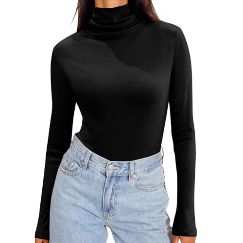 Fjquamitix Turtle Neck Tops for Women High Polo Roll Neck Thermal Underwear Thermal Long Sleeve Top Women Turtleneck Plain Jumper (UK, Alpha, L, Regular, Regular, Black)