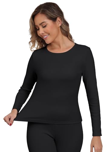 Balck Thermal Long Sleeve Top Women Ladies Thermal Underwear Womens, Fleece Lined Crew Neck Women's Base Layer Women (XS)