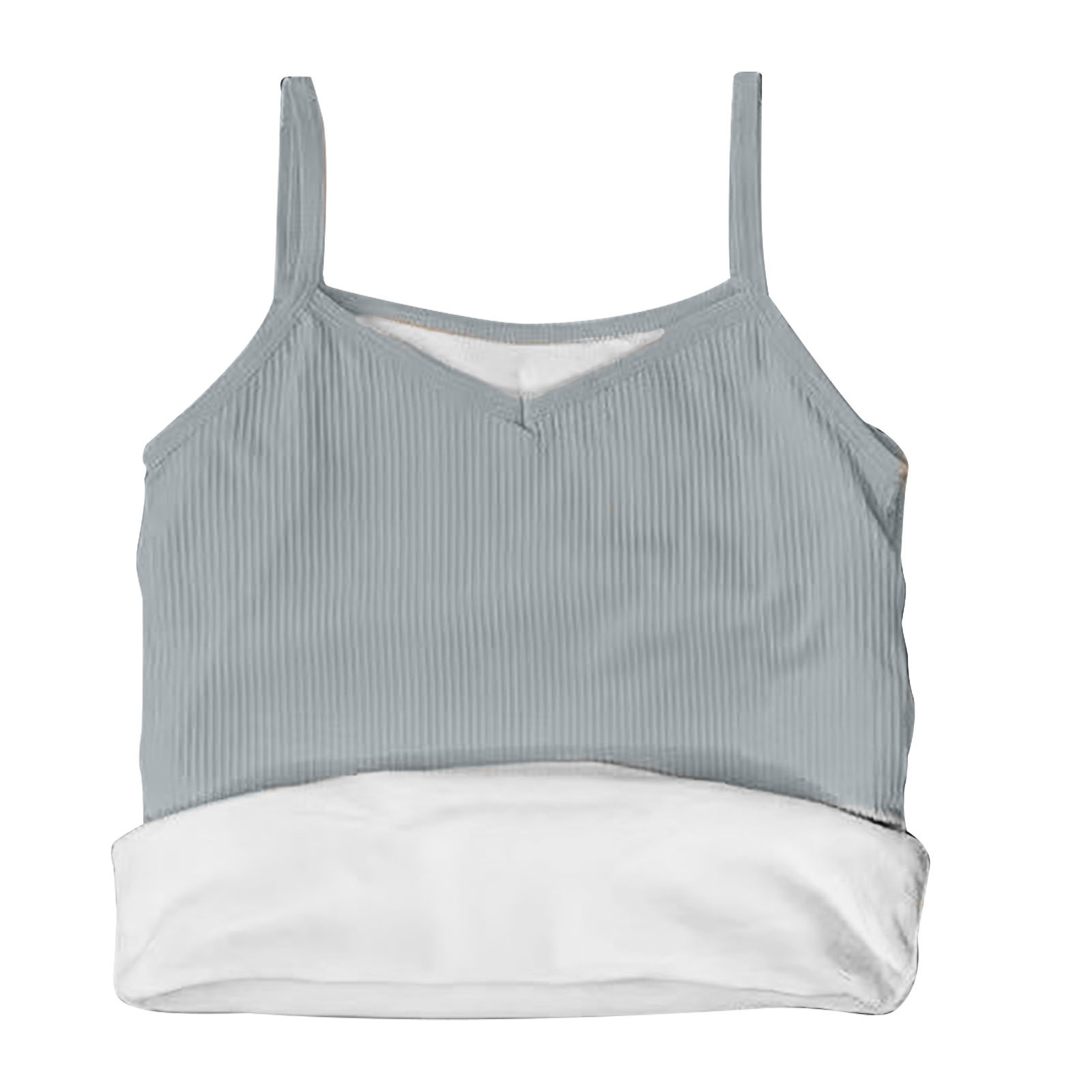 (Gray)Thermal Tank Top Women Cold Protection Thickened Fleece Lined Spaghetti