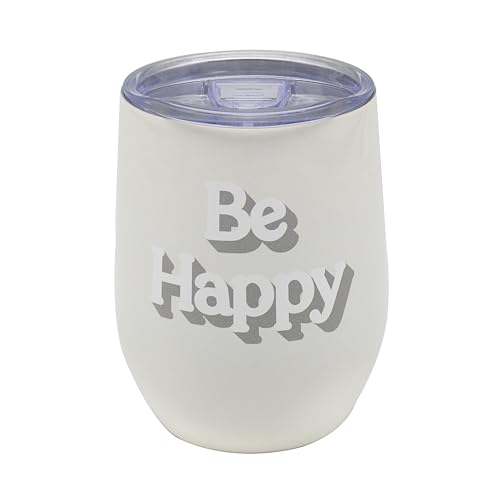 Lesser & Pavey Thirsteez Travel Cup Be Happy for Hot Or Cold Drinks | Large Thermal Travel Mug with Lid & Handle for Office, Gym, Home Or Travel | Insulated Tumbler Coffee Cups for Daily Use