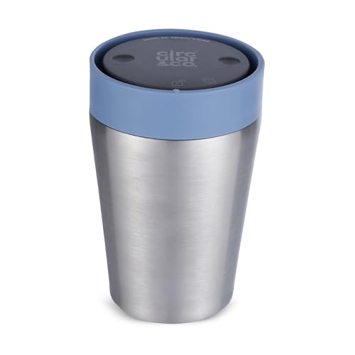 Circular & Co Thermal Stainless Steel Travel Mug - 8oz/227ml - Insulated Reusable Coffee Cup - 100% Leakproof & Lockable - 6 Hours Hot/Cold - Push Top, One Hand Open, 360 Drinking Coffee Tumbler