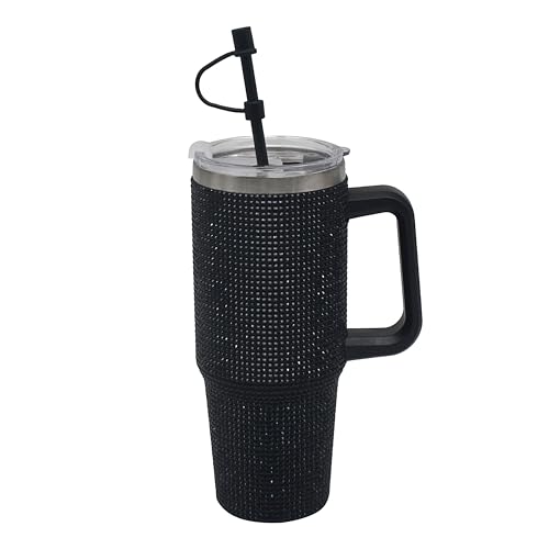 Lesser & Pavey Thirsteez Black Diamante Drinks Cup for Hot Or Cold Drinks | Large Thermal Travel Mug with Lid & Straw for Office, Gym, Home Or Travel | Insulated Tumbler Coffee Cups for Daily Use