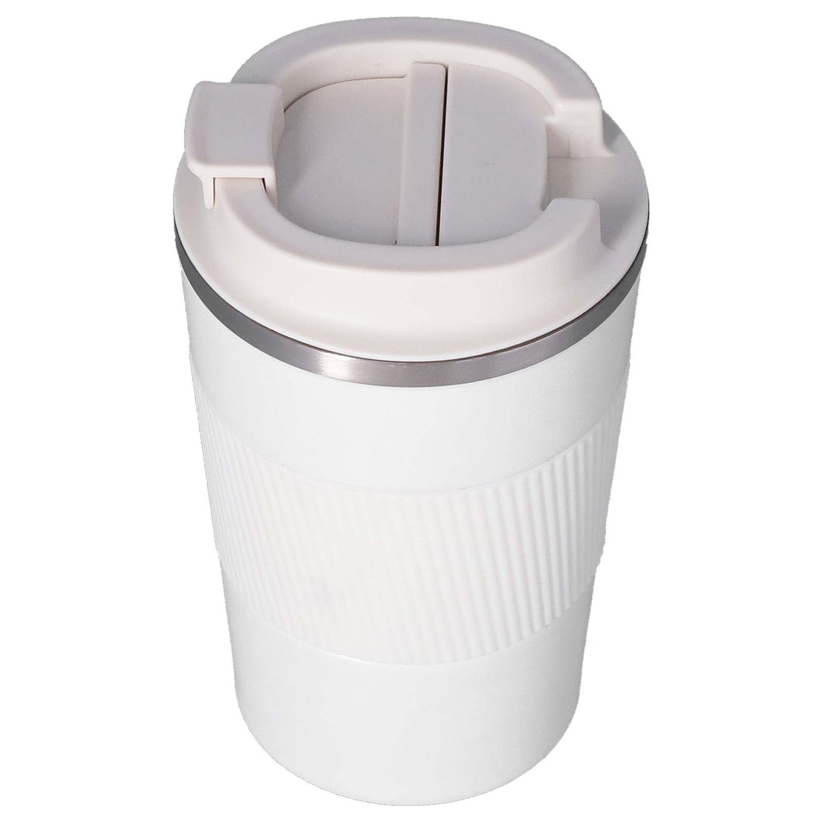 Thermal Travel Mug Flask Stainless Steel Double Wall, Button Lid, 350ml / 12 oz