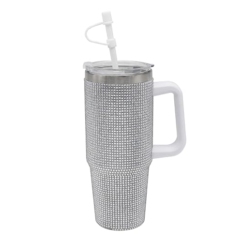 Lesser & Pavey Thirsteez Silver Diamante Drinks Cup for Hot Or Cold Drinks | Large Thermal Travel Mug with Lid & Straw for Office, Gym, Home Or Travel | Insulated Tumbler Coffee Cups for Daily Use