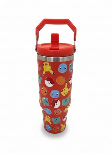 Pokemon Thermal Travel Mug Coffee Cup Tumbler with Leakproof Straw & Lid | Stainless Steel Double Wall Vacuum Insulated Water Bottle for Kids and Adults | Cold for 17Hrs & Hot for 5Hrs