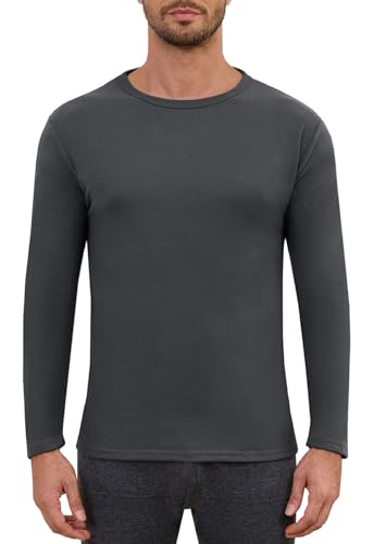 Joligiao Mens Thermal Tops Long Sleeve Top Men's Thermal Underwear Crew Neck Winter Warm Underwear Shirts Thick Base Layer Clothing Fleece Lined Keep Warm Underlayer for Men Outdoor Running Hiking