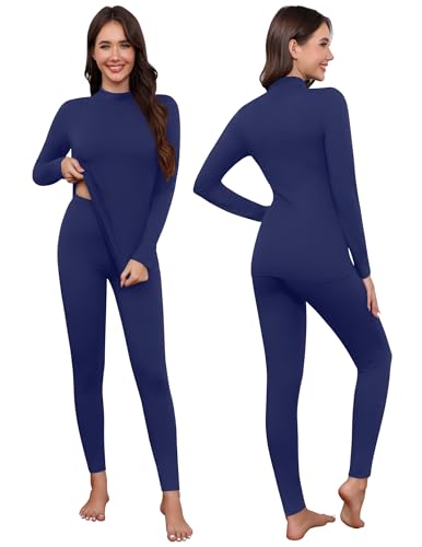 Ekouaer Ladies Thermal Underwear Set Base Layer Women Ski Base Layers Thermal Clothing & Leggings Thermal Underlayer, Navyblue M
