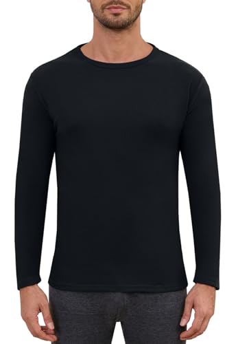ITRAT® Mens Thermal Underwear Vests Long Sleeve Tops, Thermal T-Shirt Warm Underlayer Winter Thermals Base Layer Clothing Men Vest Top Size S-XXL (Large Black)