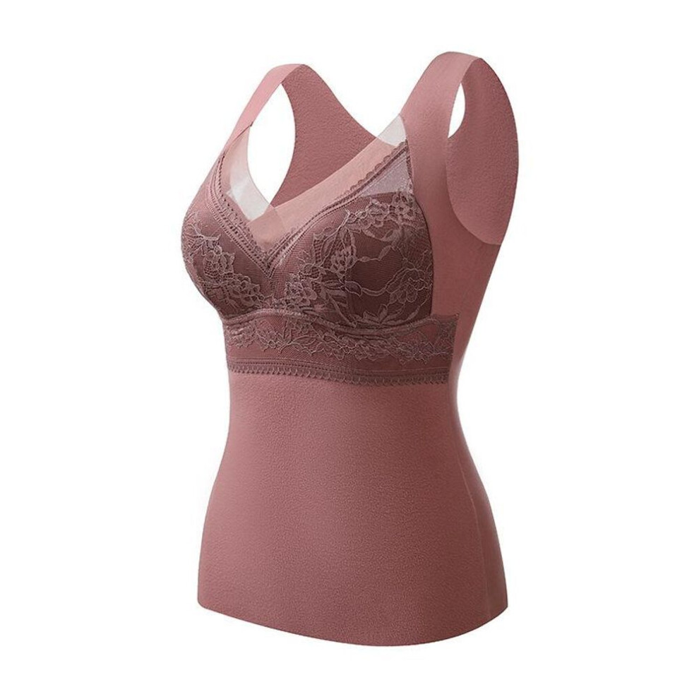 (light pink, 2XL) Women's Autumn and Winter Lace Velvet Thermal Vest Women's Embroidered Fixed One-Cup Slim Bottoming Thickened Thermal Underwear