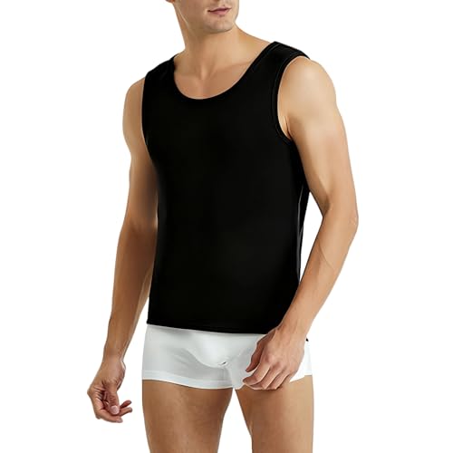 Sleeveless Tshirt Men - Vests for Men Uk Summer, Winter Thermal Tank Top Heavyweight Fleece Lined Undershirt Warm Sleeveless Shirt Cold Weather Base Layer Comfort Fit (Black, M)