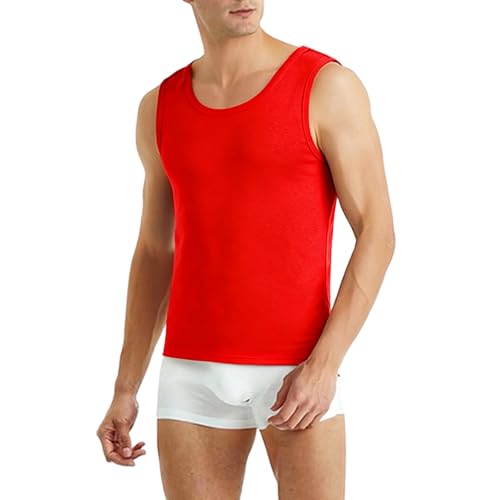 Vests for Men Uk Summer, Mens Tank Tops, Winter Thermal Tank Top Heavyweight Fleece Lined Undershirt Warm Sleeveless Shirt Cold Weather Base Layer Comfort Fit (Red, 3XL)