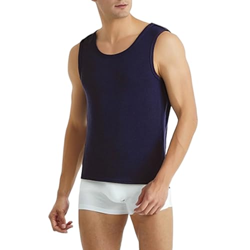 Tank Top Men, Men's Vests Loose, Winter Thermal Tank Top Heavyweight Fleece Lined Undershirt Warm Sleeveless Shirt Cold Weather Base Layer Comfort Fit (Navy, M)