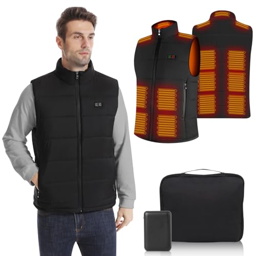 Rtdep Heated Gilet for Men, Heated Body Warmer Mens with 10000mah Battery Pack, Heated Vest with 8 Zone Heating, Heated Jackets for Men Work Thermal Vests, Motorcycle(S)