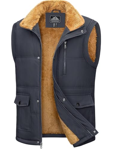 MAGCOMSEN Men's Outerwear Vests Winter Thermal Sleeveless Jackets Work Hiking Camping Outerwear Coats Winter Fleece Lined Thermal Gilets with Zip Pockets, Dark Grey