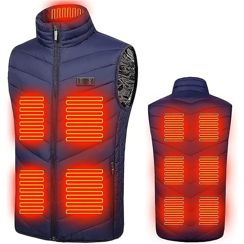 (Blue-9 Heating Zones, 3XL) Heated Body Warmer Ladies Men Heated Vests Heating Jacket With Usb Rechargeable Electric Thermal Vest Winter Warm Lightwei
