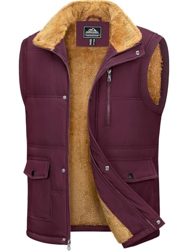 MAGCOMSEN Men's Outerwear Vests Winter Thermal Sleeveless Jackets Work Hiking Camping Outerwear Coats Winter Fleece Lined Thermal Gilets with Zip Pockets, Wine Red