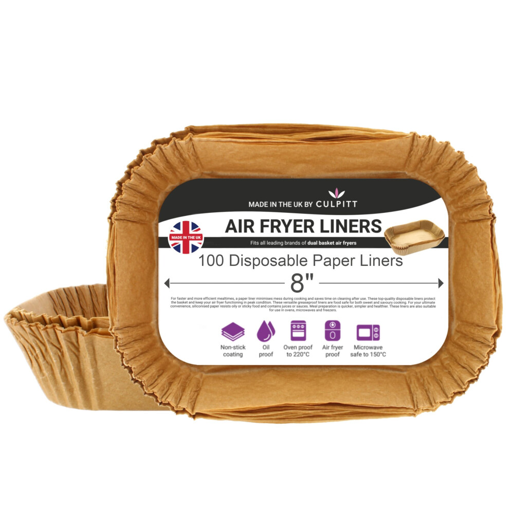 Culpitt Air Fryer Liners for Ninja Dual | 100 | Non-Stick Disposable Liners, Designed for Ninja, Tefal, Tower, Salter | 200mm x 130mm | Made in The UK | 100 Pack