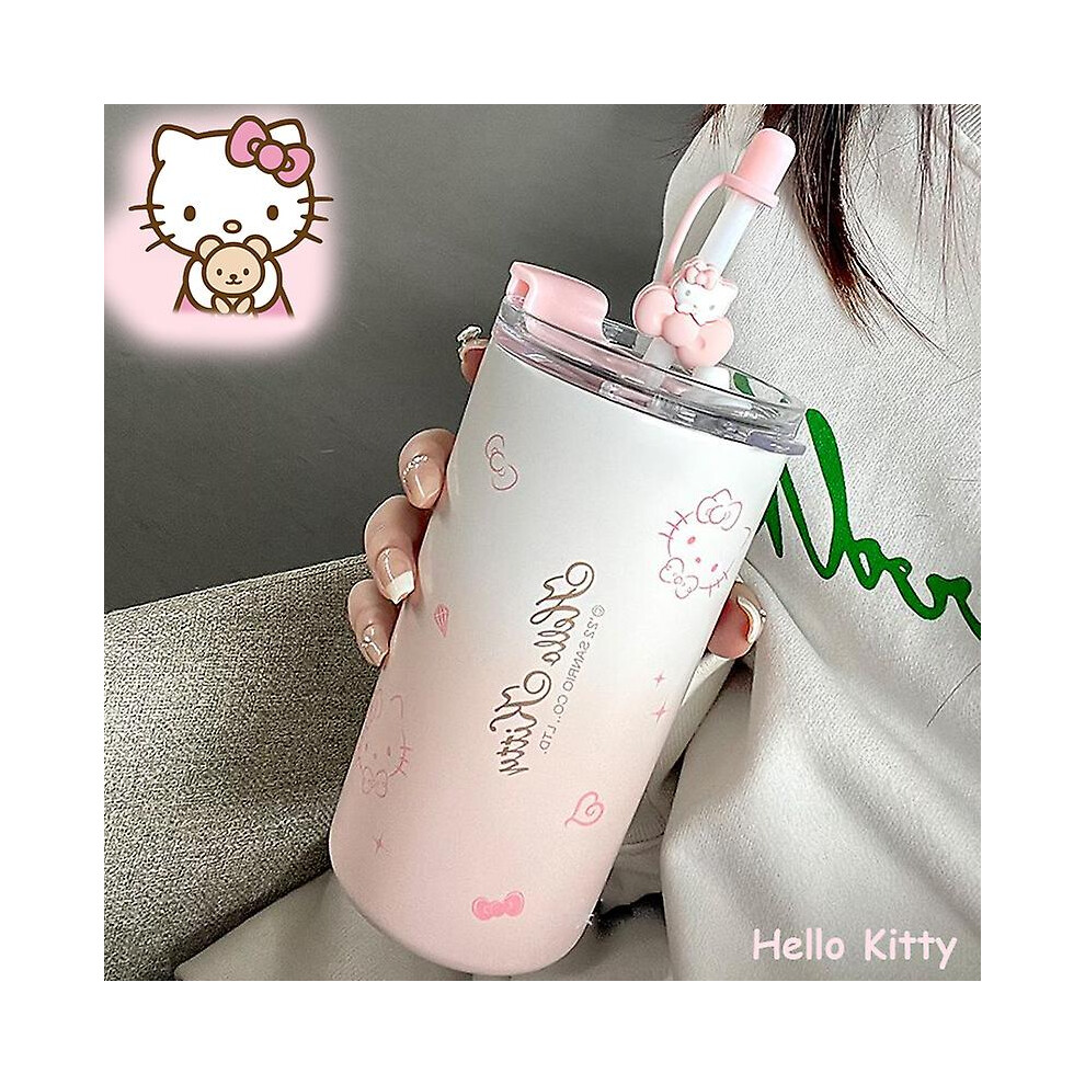 Sanrio Kawaii Hello Kitty Water Cup Student Cartoon Anime 480ml Portable Straw Direct Drink Thermos Cup Office Coffee Cup Water Cup Gift