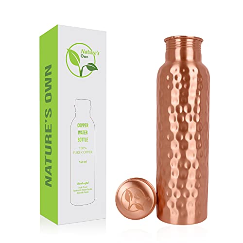 Nature's Own Hammered Copper Water Bottle 1000 ml Water Capacity - Leak Proof Handmade Thermos Flask Ayurveda Water Bottle Limited Stock