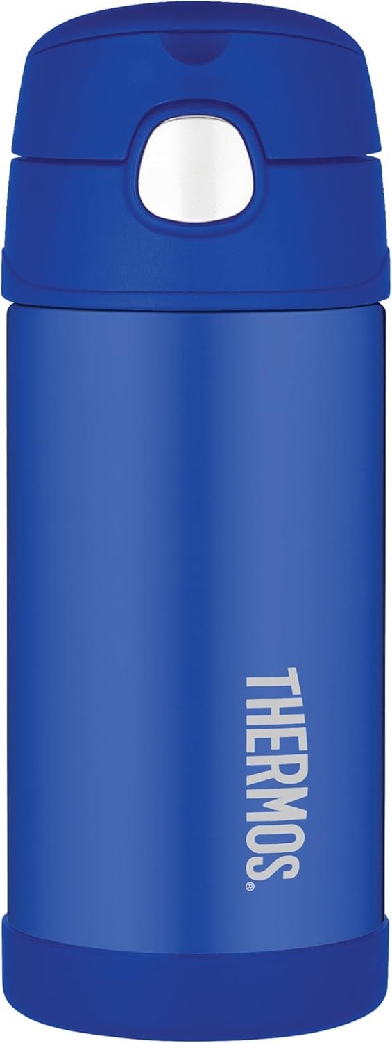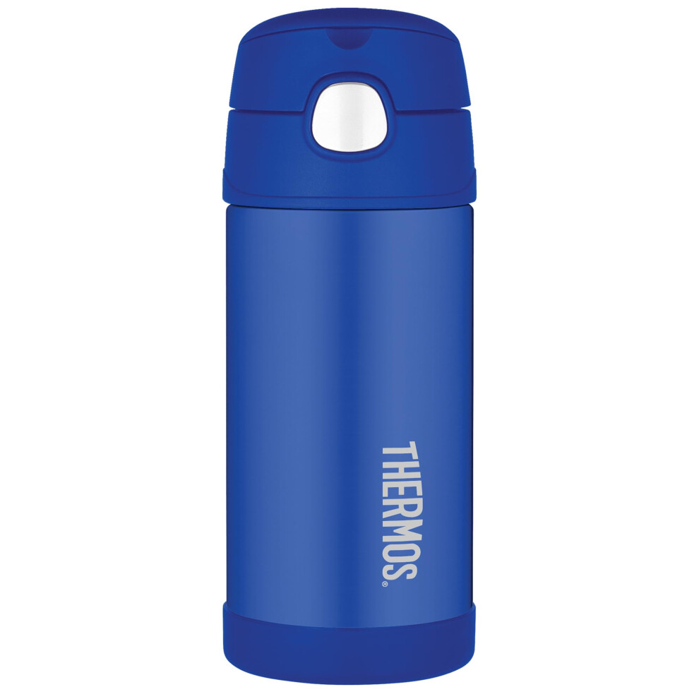 Thermos - Blue Water Bottle (355ml) - BPA Free, Stainless Steel, Spill Proof, Pop-Up Straw, Kids Flask with Carry Handle for 12-Hour Cold Drinks
