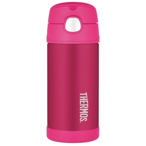 Thermos - Pink Water Bottle (355ml) - BPA Free, Stainless Steel, Spill Proof, Pop-Up Straw, Kids Flask with Carry Handle for 12-Hour Cold Drinks