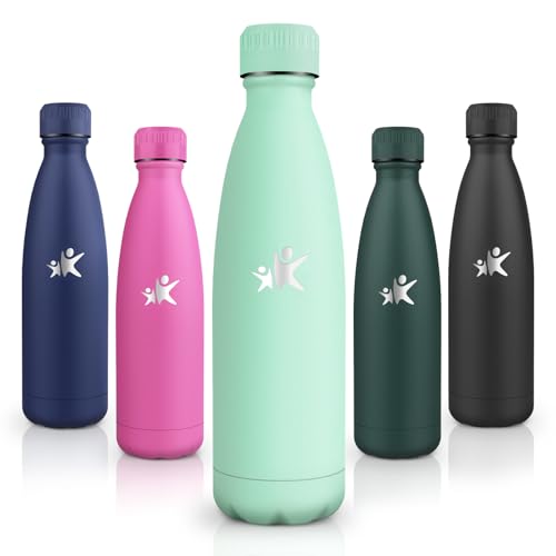 Motswedi Stainless Steel Water Bottle, 500 ml 18/8 Stainless Steel, Children's Drinking Bottle, BPA-Free, Double Walled Thermos Flask, Water Bottle for Outdoor, Yoga, Children, School, Fitness, Teal