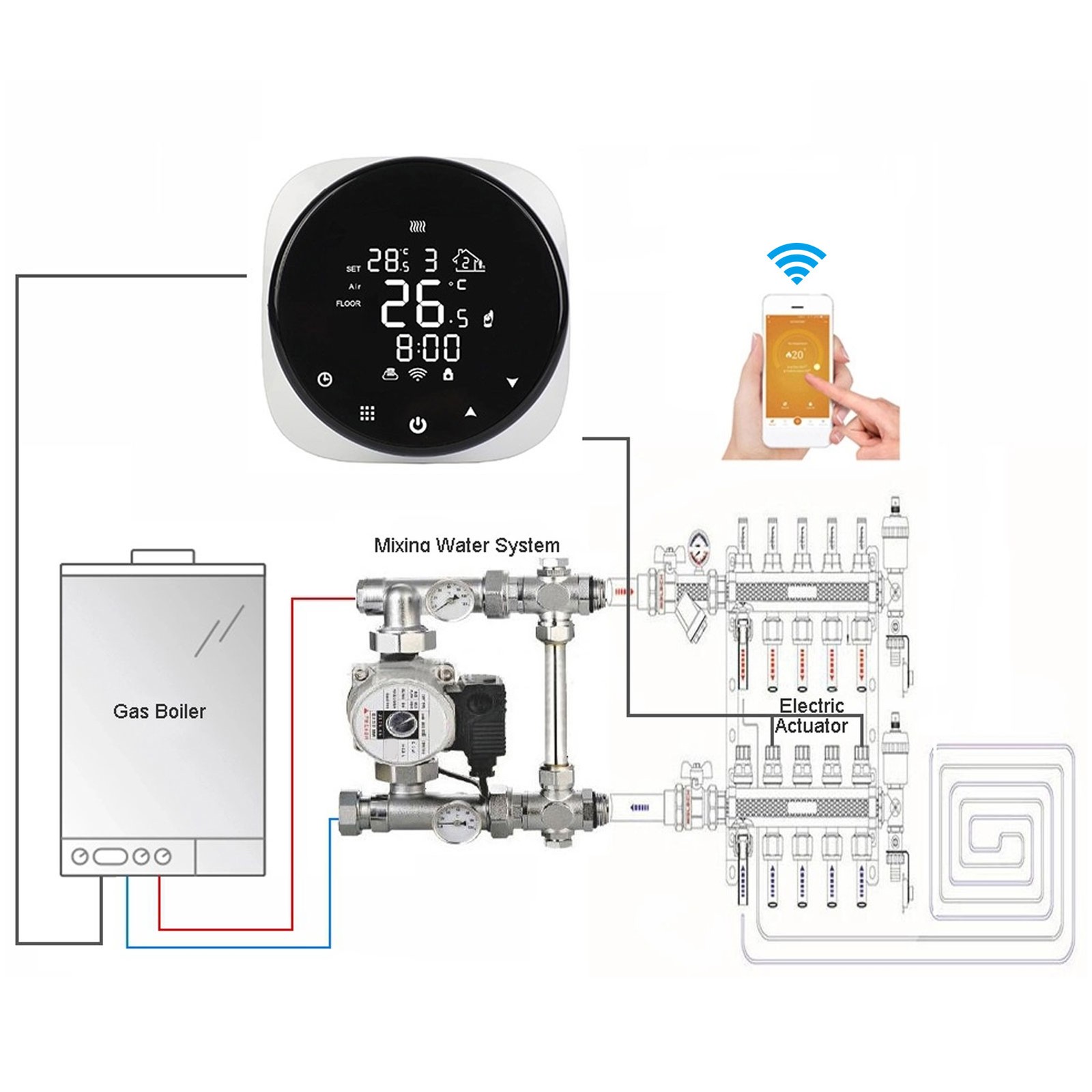 WiFi Smart Thermostat Gas/Water 3A for Boiler Heating(wifi), Color Font