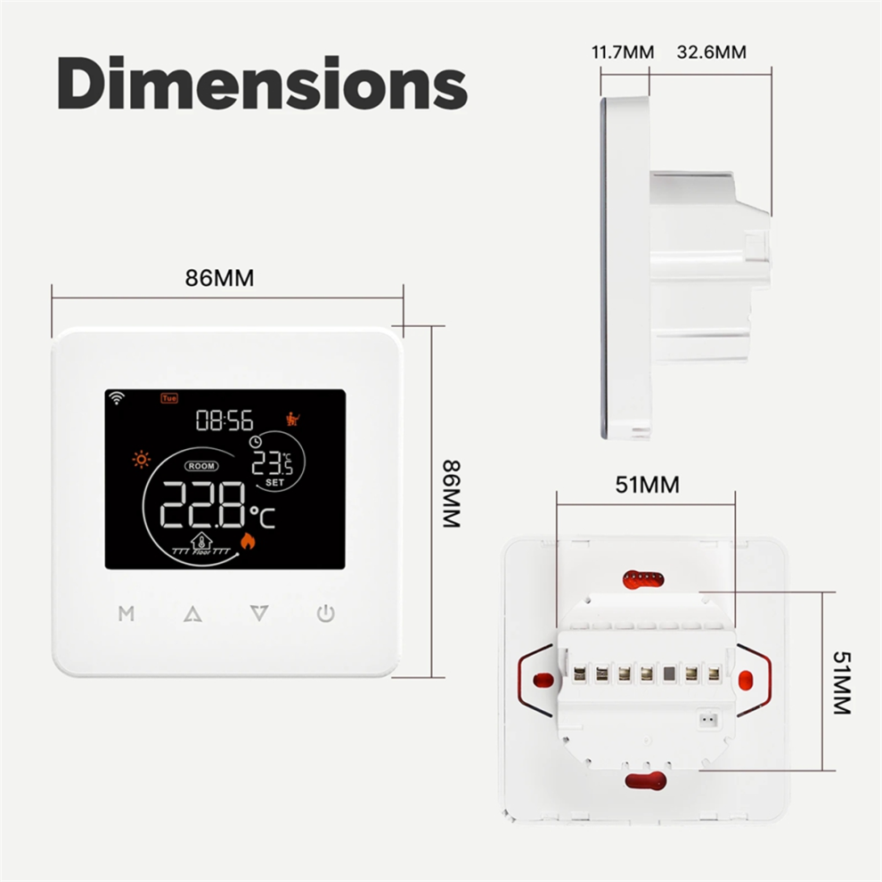 Tuya WiFi Smart Thermostat 3A Water Gas Boiler Temperature Controller for Home Home Automation White