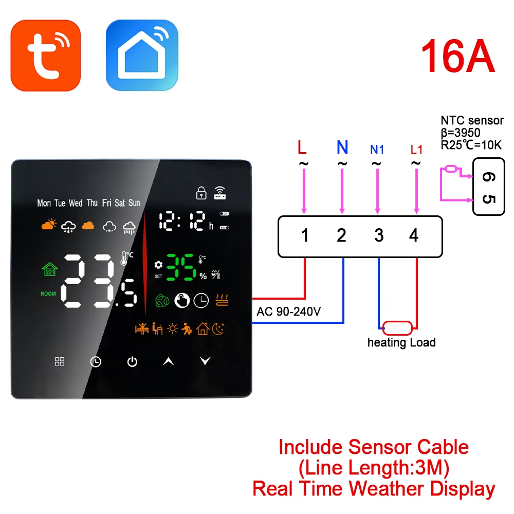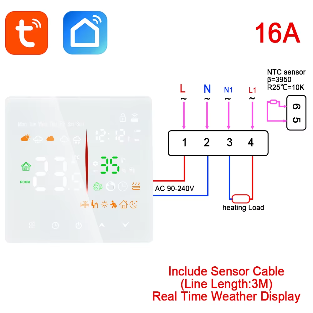 Smart Room Thermostat with Wifi Tuya APP Control, Voice Command via Alexa/Google
