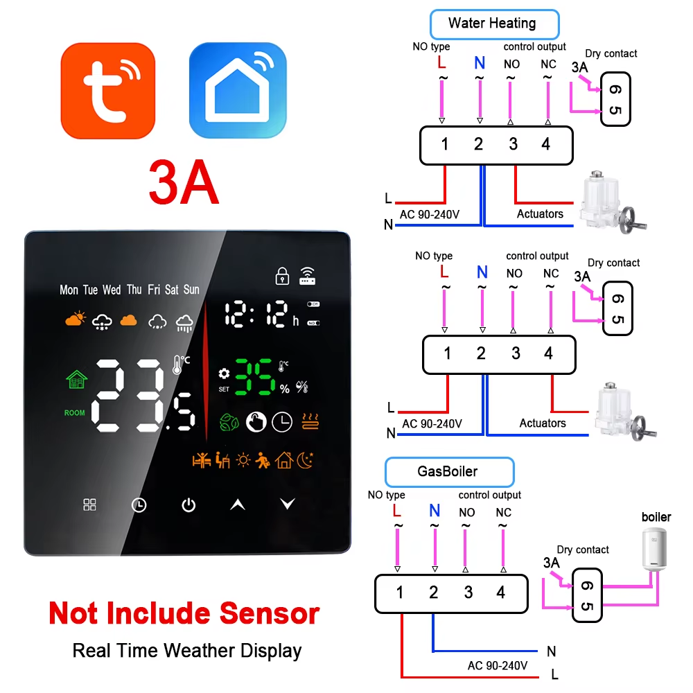 Programmable Smart Thermostat Compatible with Google Assistant Tuya App Dual Connection Modes WiFi and Bluetooth Customizable Color Screen