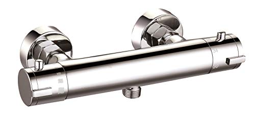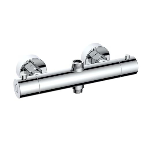 MORADO Thermostatic Shower Mixer Bar with Top Outlet 3/4" G and Bottom Outlet 1/2" G,Bar Mixer Shower,Round Shape,Brass,Chorme Finished,3/4" G to 1/2" G Adapter for Top Outlet is Included.