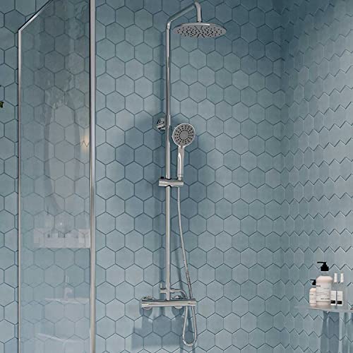 YOOZENA Thermostat Shower Set,Height Adjustable Shower Mixer Set with Overhead Shower,Thermostatic Shower Mixer bar,3-Types Handheld Shower, Shower System for Bathroom,Chrome