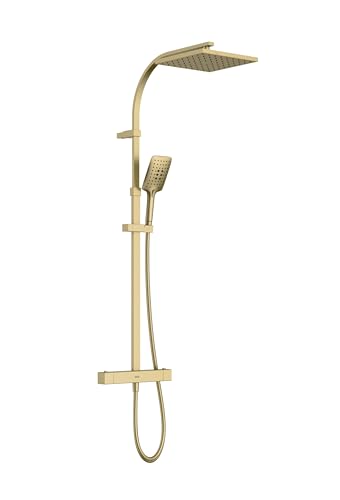 Nes Home Square Brushed Brass Exposed Thermostatic Shower Mixer Bar Valve