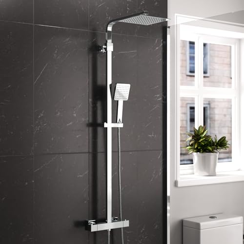 Lois Modern Bathroom Thermostatic Shower Mixer Bar Valve Tap Square Head Exposed