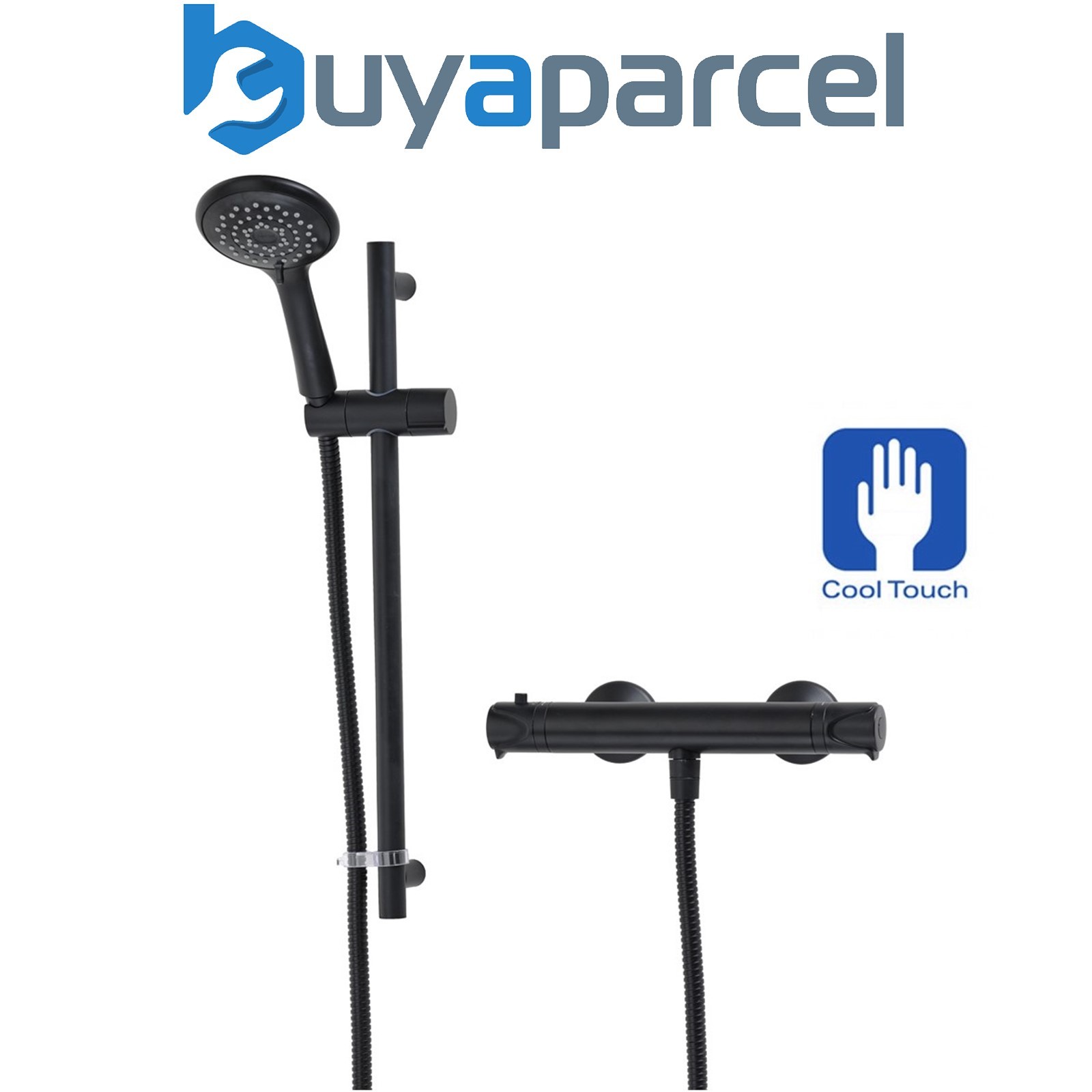 Triton Dene Matt Black Cool Touch Thermostatic Bar Mixer Shower + Riser Rail
