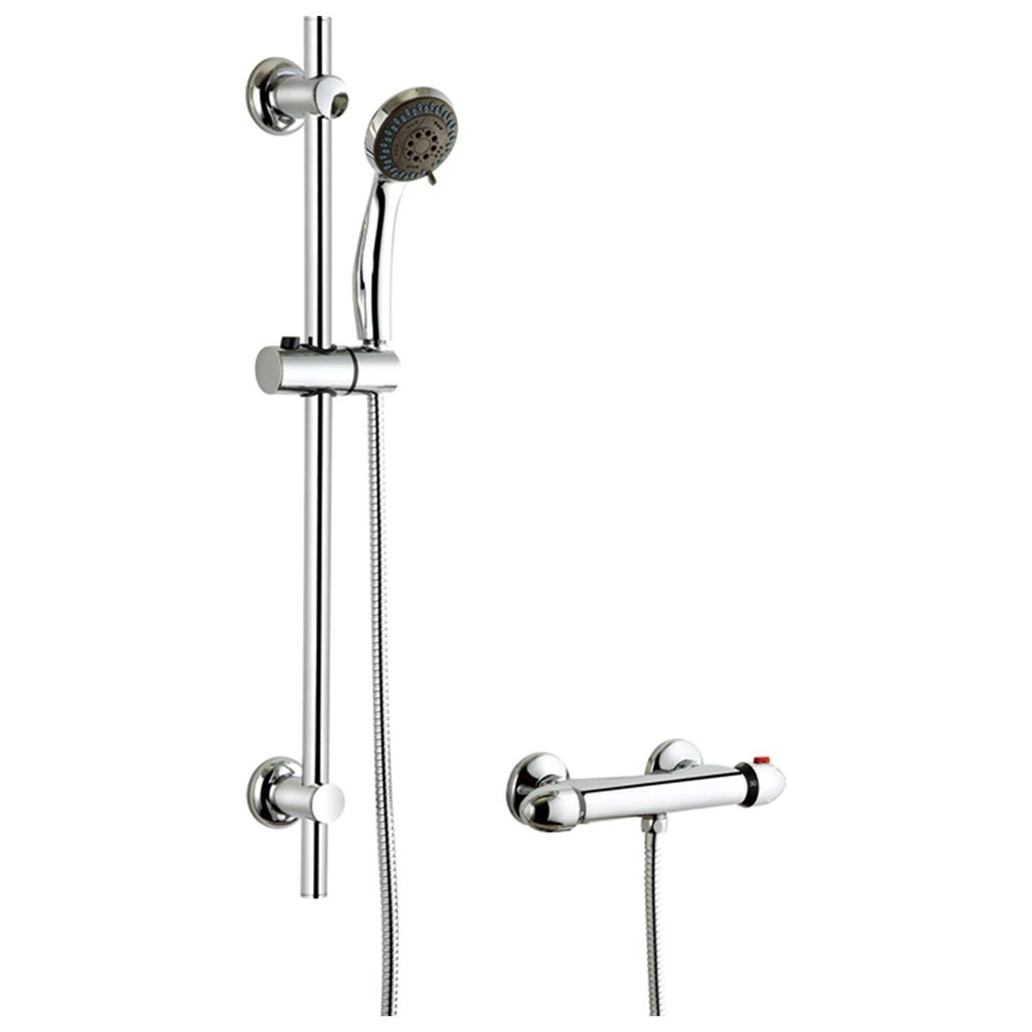 Thermostatic Shower Mixer Bar Single Lever Exposed Bath Shower Mixer Valve Anti Scald Tap, Hot Cold Water Mixer Constant Temperature Control for Bathroom - Chrome