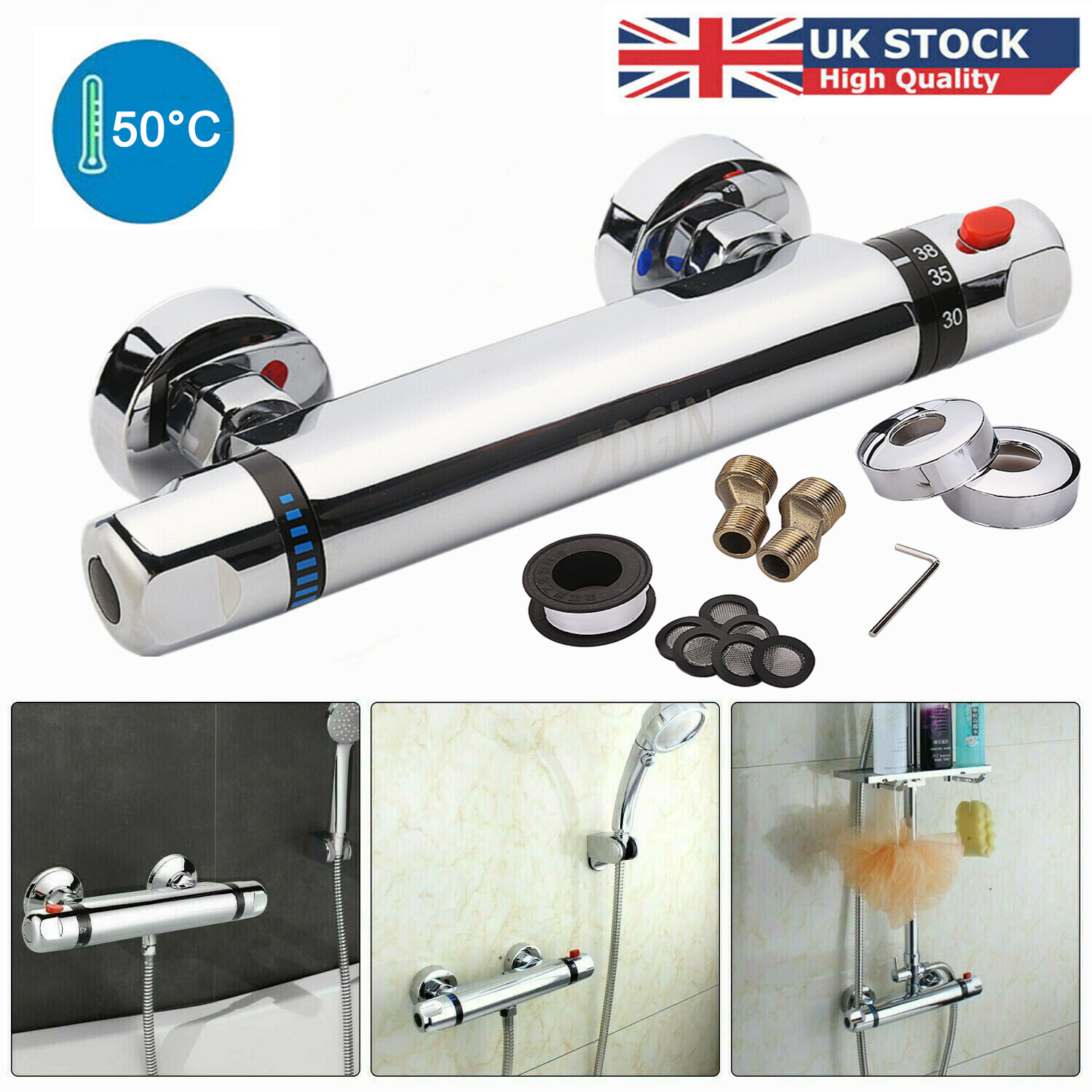 Thermostatic Shower Bar Mixer Valve Tap Chrome Bathroom Twin Bottom 1/2" Outlet