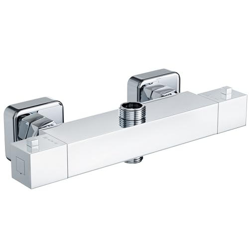 MORADO Thermostatic Bar Mixer Shower, Thermostatic Shower Bar with 3/4" G Top Outlet and 1/2" G Bottom Outlet,Square Shape, Brass, Chorme Finished, Wall-Mounted