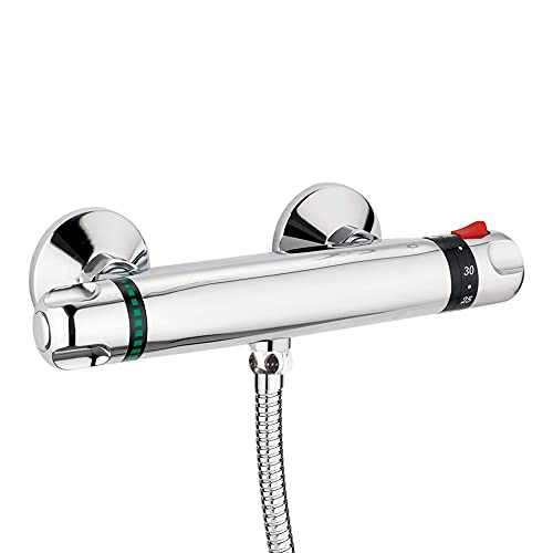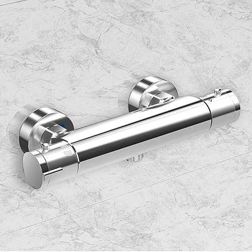 Thermostatic Shower Mixer Bar, Wall Mounted Thermostatic Shower Mixer Valve 38°C Anti Scald, Exposed Shower Mixer Tap, Hot & Cold Water Intelligent Constant Temperature, Solid Brass, Chrome
