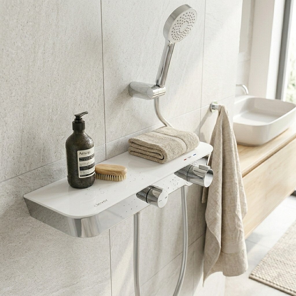 Estante Chrome Thermostatic Shower Bar Mixer Valve with Shelf Modern Bathroom