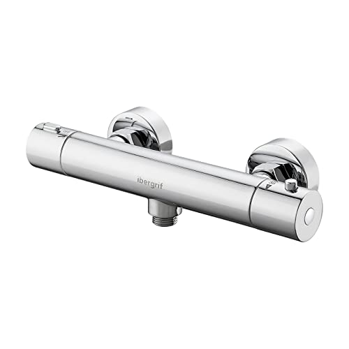 Ibergrif M21805-1 Thermostatic Shower Mixer Bar Two Outlet, Wall Mounted Shower Mixer Tap,Anti-Scald, Bottom 1/2" BSP, Chrome, Silver
