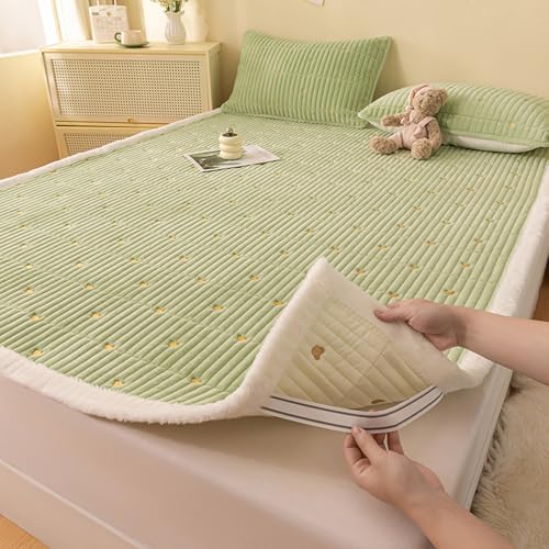 JINYOU Milk Velvet Mattress Pad For Winter, Thick Soft Bed Topper For Single & Double Bed, Ideal For Dormitory, Guest Room(D,150 * 200cm)