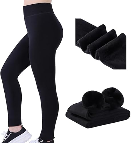 CheChury Women Fleece Lined Leggings Women Super Thick Cashmere Tights Thermal High Waist Double Layer Pants Soft Winter Plush Warm Elastic Thermal Pants for Lady,Fashion-Black,M