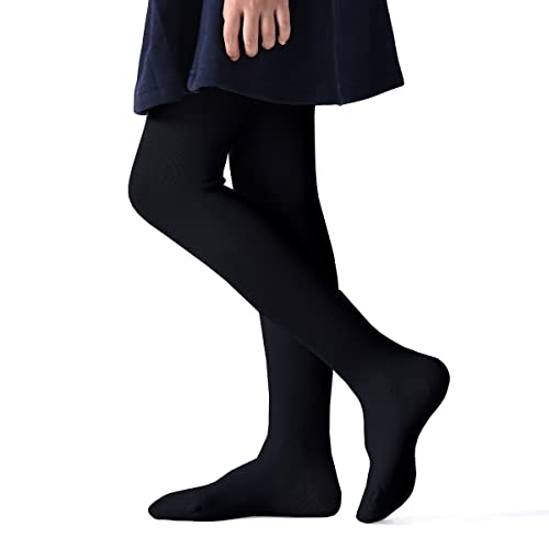 Marchare Little Kids Winter Tights Thick Cotton Solid Leggings School Uniform 4-6 Years Warm Stockings For Girls Black 2 Pack