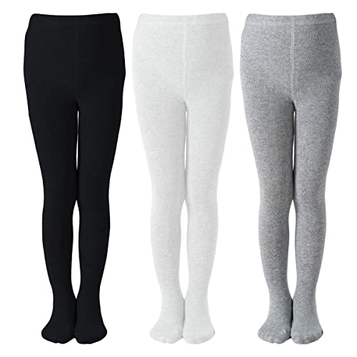 Marchare Little Kids Winter Tights Thick Cotton Solid Leggings School Uniform 4-6 Years Warm Stockings For Girls Black/White/Grey 3 Pack