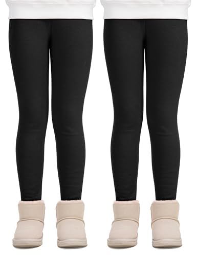 Kefiyis Girls Fleece Lined Leggings Winter Thermal Leggings Kids High Waist Cotton Thick Warm Trousers for 3-13 Years Black 110